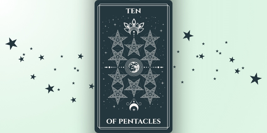 Το δέκα των πεντάκτινων είναι μια κάρτα ταρώ που συμβολίζει τον πλούτο, τη μακροπρόθεσμη σταθερότητα και την ευημερία των γενεών. Μιλάει για οικονομική αφθονία, ισχυρά θεμέλια και τη χαρά της υποστήριξης αγαπημένων προσώπων μέσω μιας ασφαλούς και ουσιαστικής κληρονομιάς. Αυτή η μικρή αρκάνα κάρτα αντιπροσωπεύει τόσο την υλική επιτυχία όσο και την συναισθηματική ασφάλεια που προέρχεται από την κοινότητα, τις οικογενειακές αξίες και ένα σταθερό θεμέλιο που είναι χτισμένο για να διαρκέσει.
