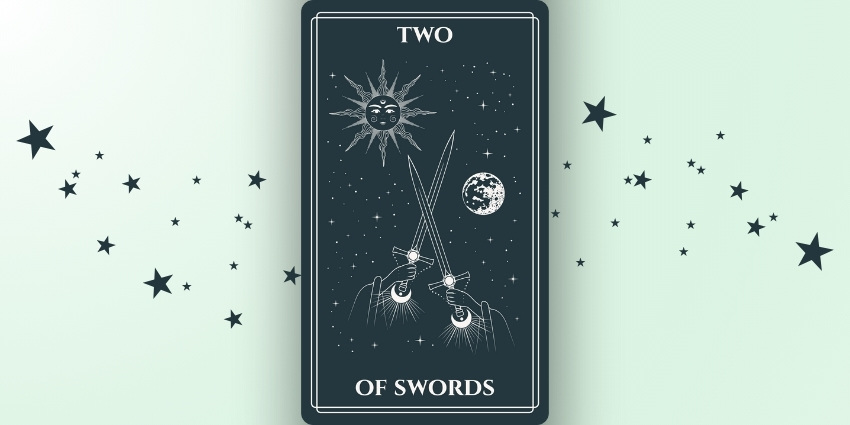 Η Δύο των Σπαθιών κάρτα ταρώ αντιπροσωπεύει την αναποφασιστικότητα, τα μπλοκαρισμένα συναισθήματα και την πάλη να δεις την αλήθεια καθαρά. Όρθια, καλεί για ισορροπία και προσεκτική επιλογή· αντεστραμμένη, προειδοποιεί για σύγχυση και αποφυγή.