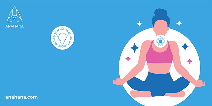 Visualiseer een helder blauw licht aan de basis van je keel. Stel je voor dat dit licht helderder wordt en zich uitbreidt bij elke inademing en je hele keelgebied vult.