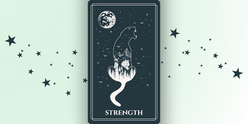 A carta de tarot A Forca fala de autocontrole, compaixao e o tipo de poder pessoal que vem da forca interior em vez de forca bruta.