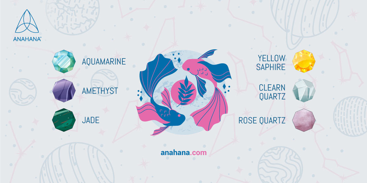 Pietrele denaștere ale Peștilor, precum acvamarinul și ametistul, pun în valoare natura compasivă și intuitivă a Peștilor.